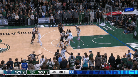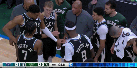 比賽只剩8秒時,雄鹿前場邊線球發出,字母哥與小波特打出“二人轉”配合,由字母哥完成空接扣籃準絕殺。