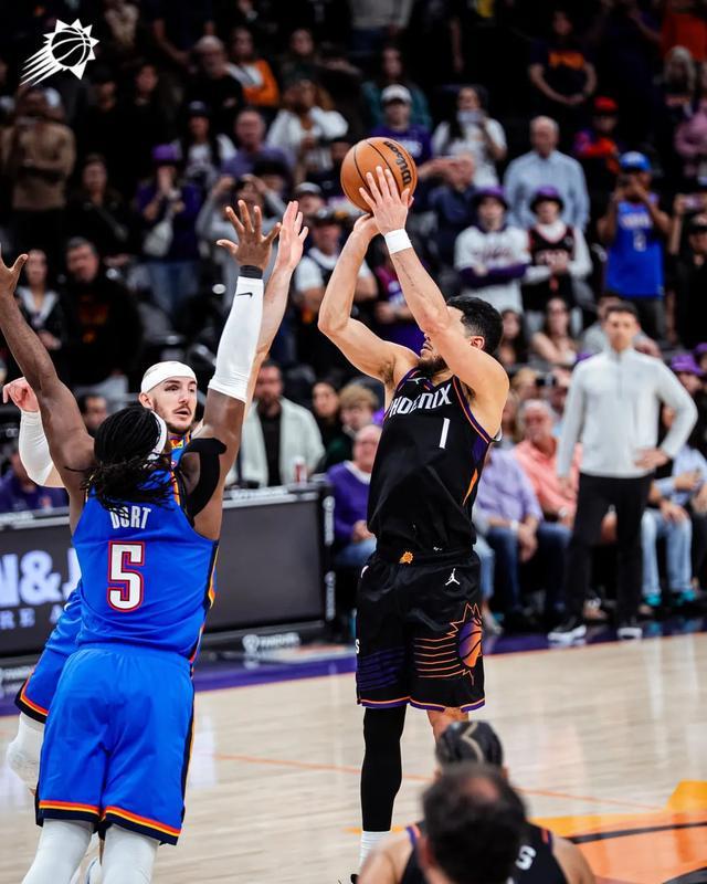 雷霆上半場一度領(lǐng)先18分,但在第二節(jié)末尾被太陽打出一波進(jìn)攻高潮,此后比賽的節(jié)奏就一直太陽的手里。布克雖然投籃命中不多,但好在能持續(xù)走上罰球線,同時也送出了9次助攻。最后一攻布克選擇相信自己的手感,在這之前他一直都在相信隊友,其中獲益最大的就是打出生涯之夜的喬丹-古德溫。