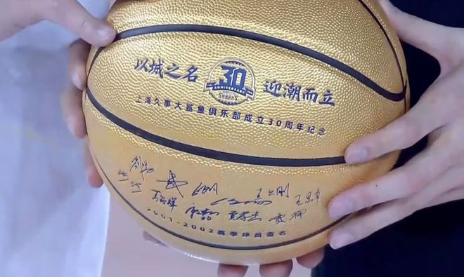 緊接著老隊長章文琪更是將印有2001-2002冠軍賽季成員簽名的籃球贈予現役上海久事男籃隊長王哲林,大鯊魚三十年來的精神在這一刻得到傳遞!