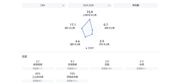王浩然目前A1類合同,本賽季出場10次后,場均可砍17.1分6.5籃板2.5助攻,三分命中率能達到44%。在已結束的10場比賽中,他已連續9場砍下兩雙得分,說明狀態出色并非偶然,而是自身實力的體現。
