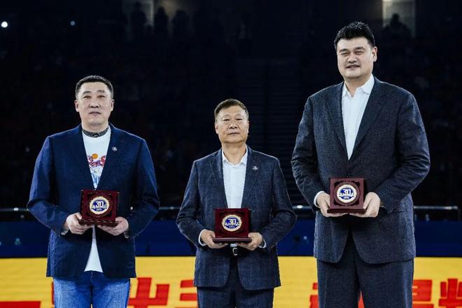 在昨晚的現場致敬環節,上海市體育局局長徐彬、久事集團董事長過劍飛、上海市籃協會長龔德慶,分別為到場的李秋平、姚明、章文琪頒發了功勛紀念章。這枚紀念章,是對那段崢嶸歲月最崇高的致敬。當三人并肩而立,時光仿佛在這一刻交匯、停止,上海籃球的榮耀與傳承定格在上海球迷眼前和心中。