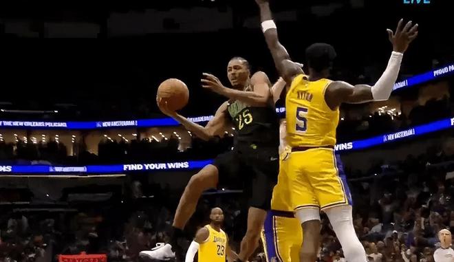 次節回來,詹姆斯搶斷反擊三打一,克內克特晃過防守上空籃竟然沒打進,這真是一名NBA球員嗎?范德比爾特搶斷后,小尼克-史密斯長傳助攻詹姆斯輕松扣籃打進,湖人領先到6分。東契奇踢到自己摔倒,裁判竟然吹罰墨菲犯規,但鵜鶘未申請挑戰。墨菲空接暴扣后再強突打成2+1,鵜鶘三打一快攻被東契奇搶斷破壞,兩隊戰成46-46平手。東契奇送出超高弧線妙傳,詹姆斯底線直接起飛幾乎完成平框空接暴扣,今日十佳球沒跑了!錫安快下連過三人輕松上籃打進,阿爾瓦拉多漂移中投壓哨再中,半場戰罷,鵜鶘54-51反超湖人3分。