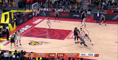 末節還剩3分鐘,隨著薩林杰2罰,陳家政三分打進后,廣東103-99深圳,杜鋒換上薩姆納,史密斯晃倒陳家政飚進三分,王浩然反擊補籃打進,最后2分鐘深圳104扳平比分。