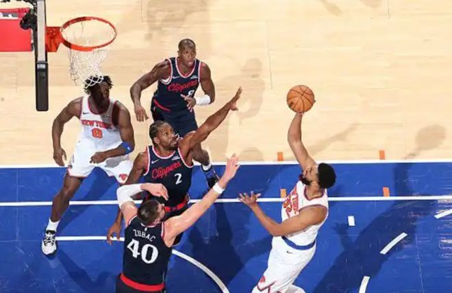 次節回來,麥克布萊德和倫納德互飚三分,喬丹-米勒大空位接球三分再中,快船領先7分,再次打停尼克斯。麥克布萊德連中三分,幫助尼克斯緊咬比分。倫納德標志性干拔中距離得手,唐斯強打內線轉身勾手命中,麥克布萊德長兩分再投進,尼克斯42-42追平比分。哈登三分線外撤步跳投穩穩命中,倫納德突破勾手再打進,快船重新拿回5分領先優勢。布倫森三分線外搭弓射箭命中,倫納德連續跳投得手后再中三分,真是強。半場戰罷,快船56-51領先尼克斯5分。