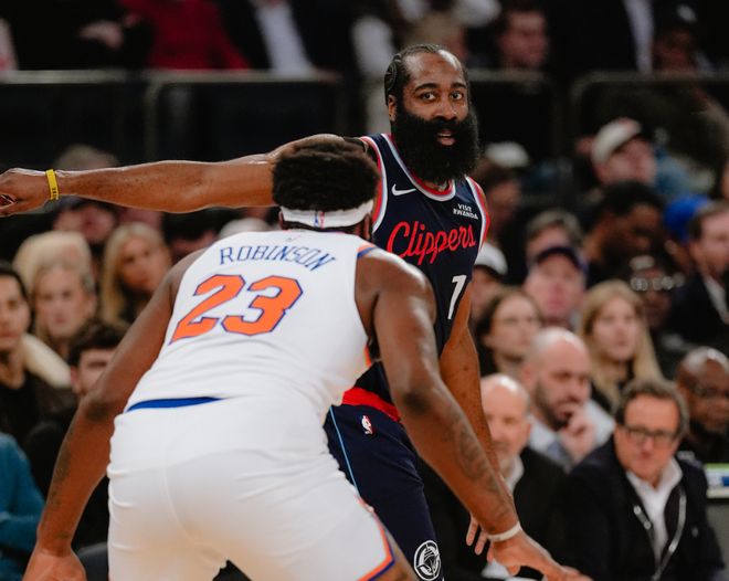 縱觀本場比賽,快船在三四節的崩盤,有四點直觀感受。第一,和前面幾場相比,祖巴茨的進攻侵略性確實回來了,手感也非常好,面對唐斯打得非常自信,搶了不少前場籃板球。但是防守端,祖巴茨問題愈發嚴重,他有點像湖人的艾頓,護框看球不看人,此外當尼克斯鋒線群沖擊籃下時,祖巴茨提供不了任何幫助,相當于對手的瞄準鏡。論對抗,他不如尼克斯的米切爾羅賓遜。第二,哈登明顯不在狀態。上一場因為肩傷被迫休戰,哈登在球隊戰績壓力面前,也不能休戰太久,本場比賽除了三分球在線之外,存在感并不高。