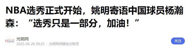 參考資料:光明網《NBA選秀正式開始,姚明寄語中國球員楊瀚森:“選秀只是一部分,加油!”》