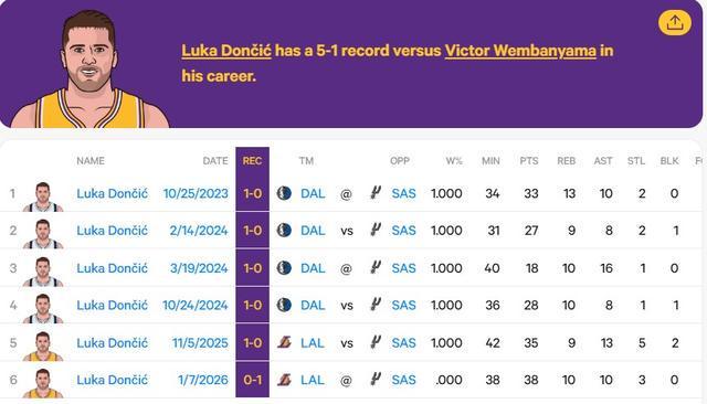 本場比賽湖人隊兩大主力詹姆斯和里夫斯休戰,東契奇領軍出戰。最終馬刺輕取湖人,這也是文班亞馬自2023年進入聯盟以來,首次率領馬刺擊敗東契奇所在的球隊。在此之前,文班亞馬面對東契奇5戰5敗。