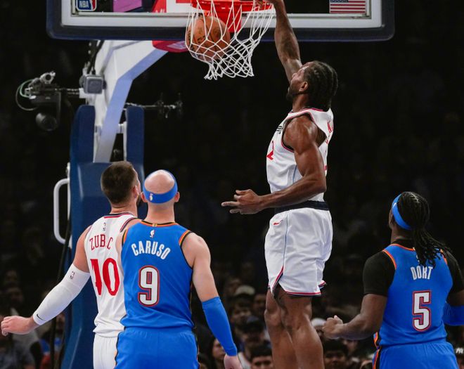 打勇士一戰,只要祖巴茨給小卡擋拆,就直接帶著對方防守人夾擊小卡,至少有5次這種情況出現,這也是一場比賽巴特勒能搶斷小卡4次的原因,因為祖巴茨沒投射,對手根本不管他。打尼克斯一戰,對手更直白:什么祖巴茨和鄧恩,都不管了,直接夾擊小卡!結果快船被一波流打花,失去懸念。快船6連勝期間,泰倫盧被迫換上大洛打首發,已經是走大運摸到正確答案了,但凡倫納德身邊有1-2個能投三分球的空間點,他都能輕松沖擊籃下。上賽季因為有鮑威爾,所以小卡也不用承擔那么大的得分壓力。