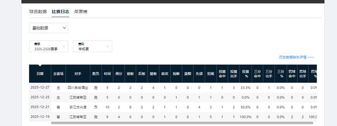 上賽季效力江蘇隊期間,崔曉龍屬于球隊主力輪換,場均可獲18.9分鐘的出場時間,以及7次出手機會。本賽季12輪過后,他僅代表上海男籃出場4次,單場最多出場時間10分鐘,最少5分鐘,場均出場7.5分鐘,戰術地位很低。