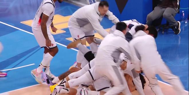 球進燈亮的瞬間,山東男籃全體球員興奮地沖進場內(nèi),和珀塞爾“疊羅漢”慶祝。這位表現(xiàn)極為出色的小外援以53.3%的命中率砍下22分,另有3籃板4助攻。