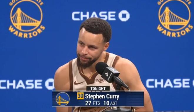 賽后,勇士球星庫里出席了新聞發布會。有記者提問,國王隊是否是勇士隊的宿敵,庫里聽后回答道:“從地理位置上來說,是的。”