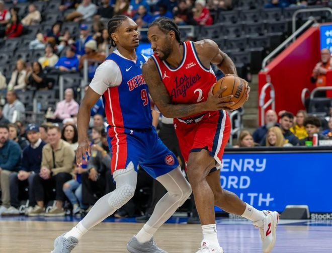 有意思的是,活塞喊出暫停后,輪到盧指導(dǎo)展示容錯率和大心臟,他把狀態(tài)火熱的小卡摁在了替補席上,哪怕場上局勢瞬息萬變、風(fēng)起云涌,他自巋然不動,硬生生等到最后三分鐘才讓卡子哥重新披掛上陣。好在盧指導(dǎo)還是賭對了,萊昂納德因為被控制了出場時間,在30分鐘的上場時間里還是非常高效地13中8,交出26分8籃板1助攻4搶斷的成績單,幾乎每一分都價值連城。
