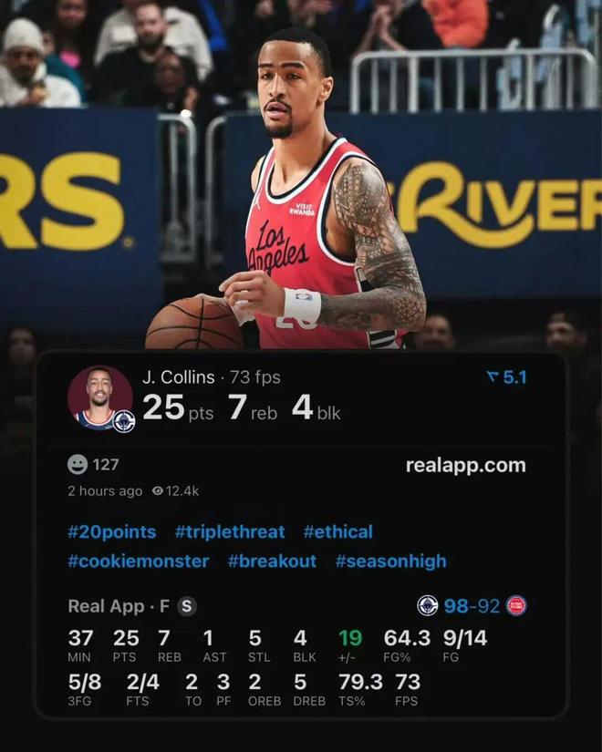 全場打完后,科林斯爆砍快船生涯新高