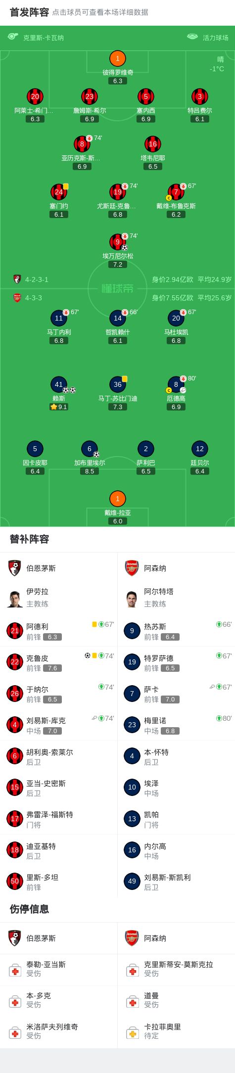 第67分鐘,阿森納連換三人,熱蘇斯、特羅薩德、薩卡替補登場