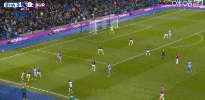 第46分鐘,阿亞里右路斜射入網,布萊頓2-0伯恩利