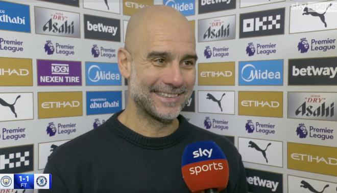 英超第20輪,曼城主場1-1戰平切爾西,賽后,曼城主帥瓜迪奧拉接受了天空體育的采訪。