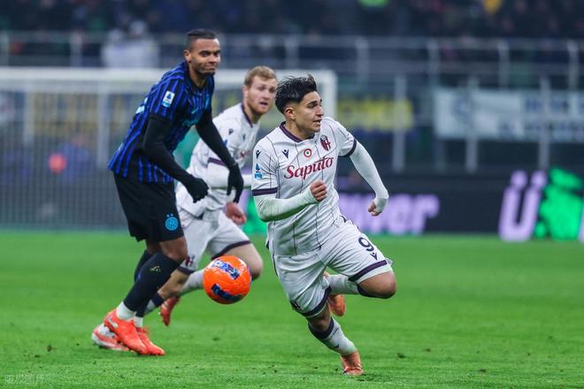 AC米蘭前天先賽贏球登頂,國米要想奪回榜首,今天就要在梅阿查球場拿下和博洛尼亞的強強對話。開場后國米就展開猛烈攻勢,第5分鐘,勞塔羅就在點球點左側獲得不錯機會,只是他近距離大力掃射,被門將拉瓦利亞奮力將球撲出。2分鐘,國米中路壓上,勞塔羅禁區弧頂處精妙直塞,圖拉姆插上獲得超近距離單刀機會,這是他大力推射還是被拉瓦利亞神勇撲出。第39分鐘,國米中后場快速反擊,圖拉姆中場右側策應腳后跟往中路一磕,勞塔羅跟進接球往前推進到禁區前沿,擠開2人包夾后將球橫傳左側,后排插上的澤林斯基迎球左腳大力推射,皮球應聲入網,國米1:0打破僵局。