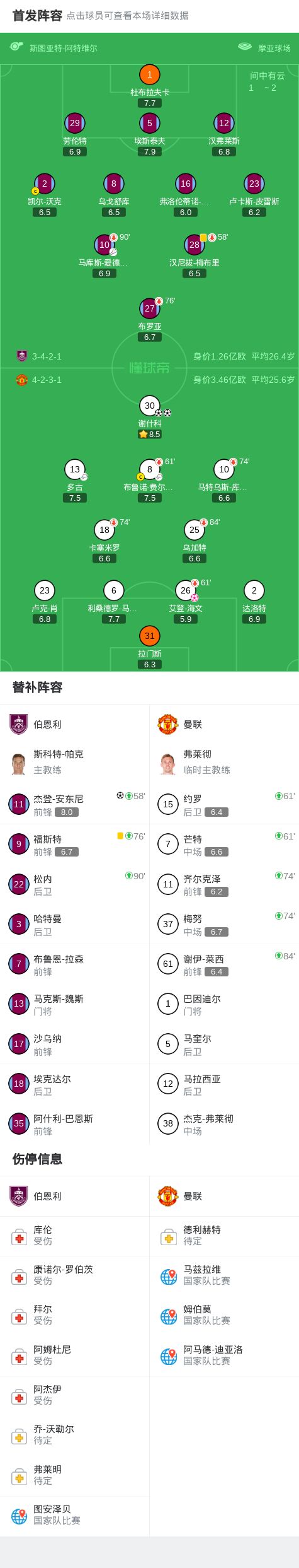 北京時間1月8日4:15,英超第21輪焦點戰,曼聯作客摩亞球場挑戰伯恩利,本場主裁判為阿特維爾。上半場,漢弗萊斯傳中打在海文腳上變線入網。下半場,謝什科先后接B費和多古的助攻破門上演梅開二度,杰登-安東尼兜射救主。最終,曼聯客場2-2伯恩利,遭三連平。