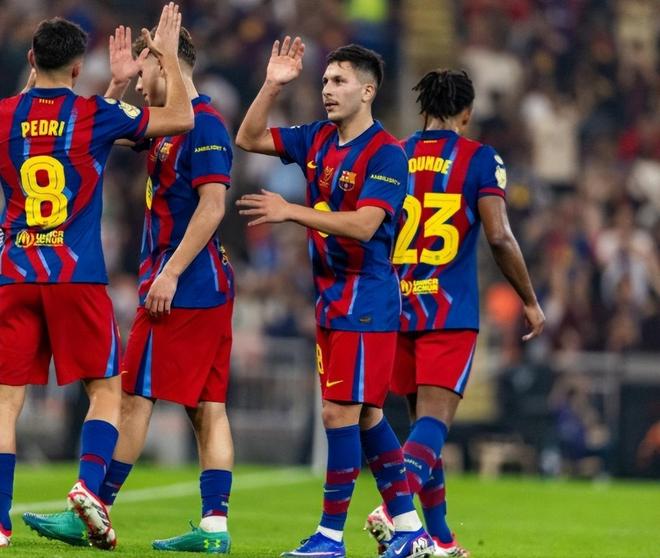 相比較之下,巴薩就贏得簡單許多了;與畢爾巴鄂競技的西班牙超級杯當中,上半場比賽費蘭-托雷斯率先破門拉開進球序幕;第30分鐘拉菲尼亞左路傳中助攻費爾明擴大領先優勢;第30分鐘烏奈-西蒙撲救失誤送禮,巴爾德吉小角度破門;緊接著拉菲尼亞在第38分鐘小角度再度爆射破門。光是上半場比賽巴薩便轟進了4球早早將比賽懸念終結;下半場第52分鐘拉菲尼亞再進一球,巴薩5球大勝輕輕松松拿到了西班牙超級杯決賽的門票。
