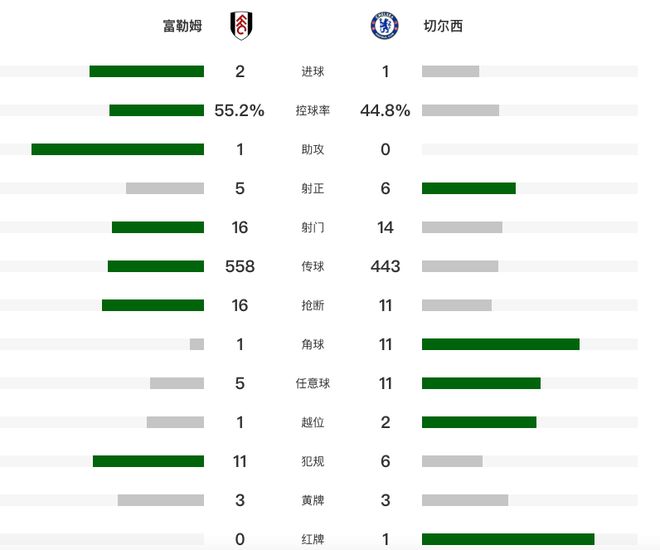 半場(chǎng)結(jié)束前,威爾遜的進(jìn)球因?yàn)橄iT尼斯越位被判無效。第55分鐘,希門尼斯頭球打破僵局。第72分鐘,德拉普門前補(bǔ)射扳平比分。第81分鐘,哈里·威爾遜勁射破門。最終,在這場(chǎng)西倫敦德比中,富勒姆主場(chǎng)1-0戰(zhàn)勝總身價(jià)11.8億的切爾西,最近6輪保持不敗的同時(shí),積分追平切爾西,切爾西最近8輪聯(lián)賽只有1勝,其中最近5輪3平2負(fù),落后榜首的阿森納17分。