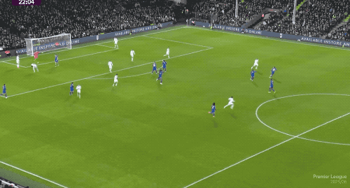 第15分鐘,哈里·威爾遜弧頂處面對(duì)兩人防守,沒有選擇突破,而是直接起腳,傷愈復(fù)出的桑切斯將球沒收。