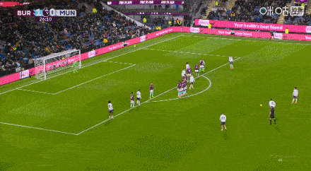 第13分鐘,卡塞米羅、達洛特右邊路漏人,漢弗萊斯左路傳中,海文封堵皮球變線,皮球直接吊進了球門后角,曼聯0-1伯恩利。